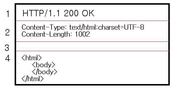 1. 시작라인 : HTTP버전+ HTTP상태코드+ 상태문구