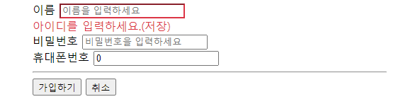 사진을 보면 가입하기 버튼을 눌렀을 때 에러가 나타는 것을 알 수 있다.