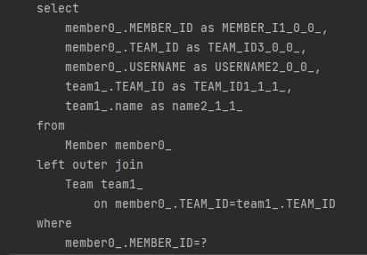 이처럼 코드를 짜면 member객체를 조회 할 때 team객체를 조인해서 함께 들고오게 된다.