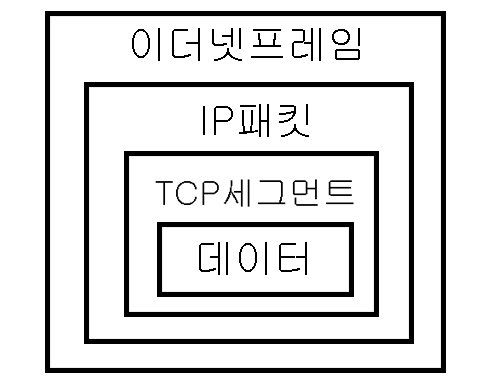 애플리케이션에서 전송할 데이터를 보내면 그 위에 TCP세그먼트를 씌우고 그 위에 IP패킷을 씌우고 마지막으로 이더넷프레임이라는 것을 씌워서 전송하게 된다.