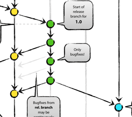 만약 중간에 수정된 코드가 develop에 돌아가게된다면 그 코드는 다음 release에서 배포될 것이다. 즉, 다음 버전에서 배포되는 것이다.