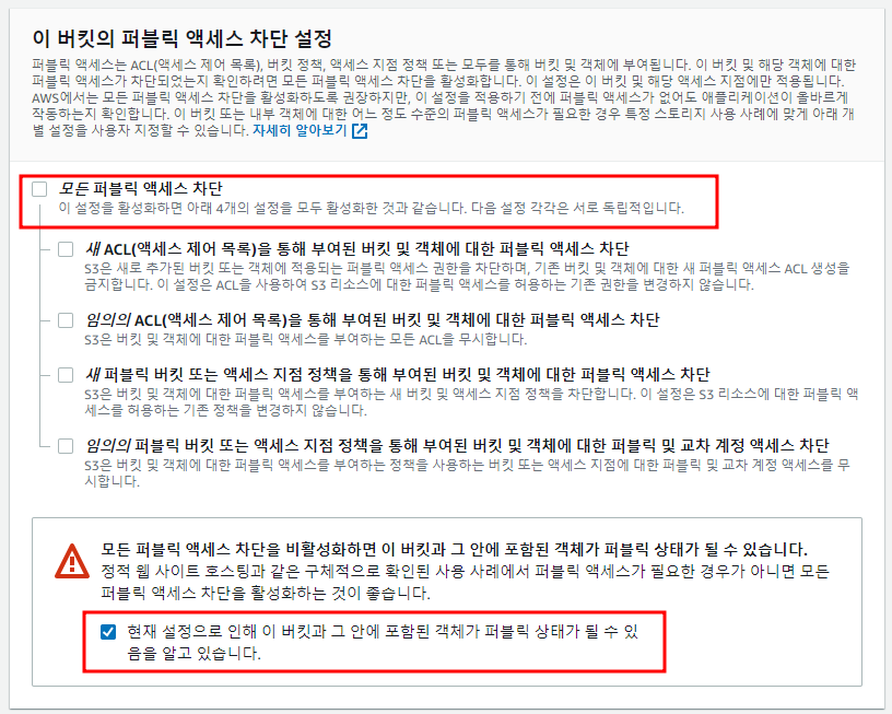 (4) 모든 퍼블릭 엑세스 차단을 선택해제한다.