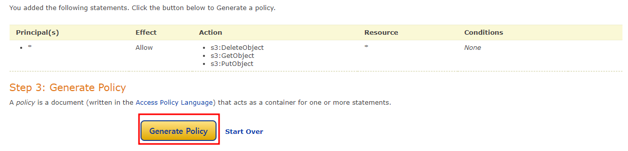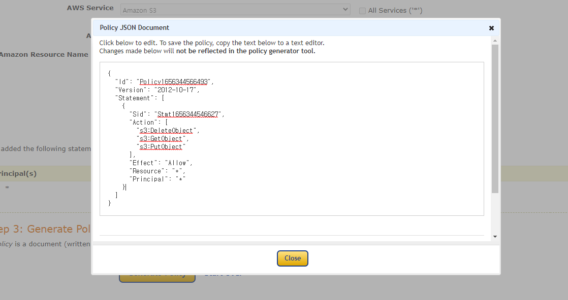 (7) 버킷 ARN을 복사한 뒤 정책 생성기를 클릭한다.
