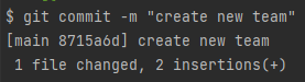 두 번째는 commit만 입력하면 vim모드가 실행된다. vim모드가 실행되면 i를 눌러서 수정모드로 들어간 뒤 커밋메시지를 입력해준다. 모든 입력이 완료되면 esc를 누른 뒤 :wq와 엔터를 입력하면 메세지가 저장된다.