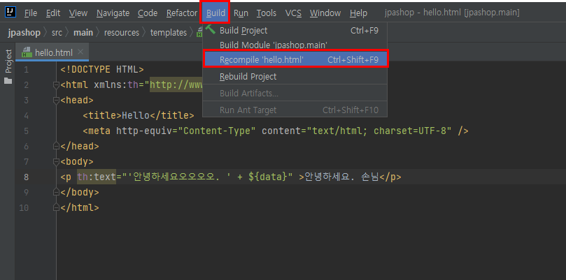 내용을 변경한 후 Build - Recompile ***.html 을 클릭한다.