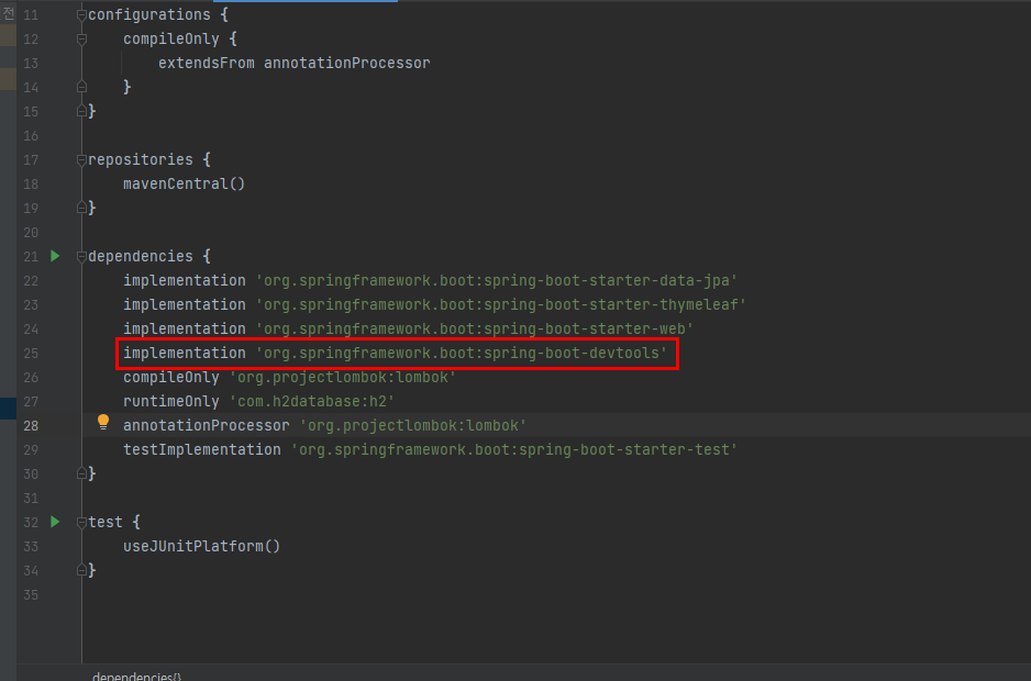 build.gradle에 **org.springframework.boot:spring-boot-devtools** 를 추가해서 라이브러리를 받는다.